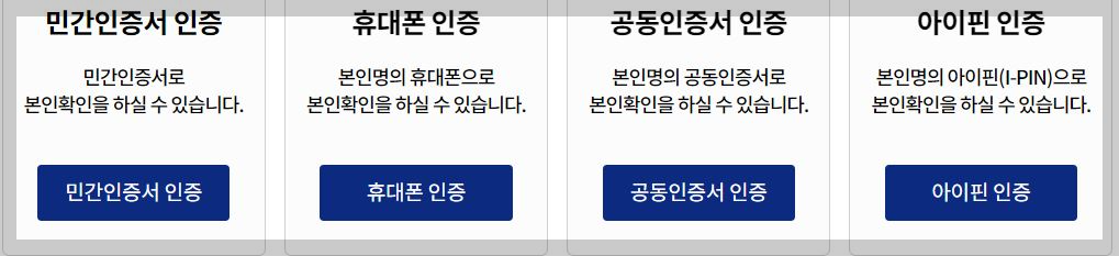 8.본인확인 방식 4가지 중 한가지 방식을 선택하여 진행하시면 됩니다.