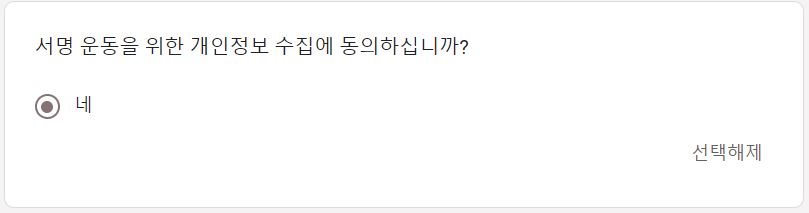 6. 서명운동을 위한 개인정보 수집에 동의를 진행합니다.